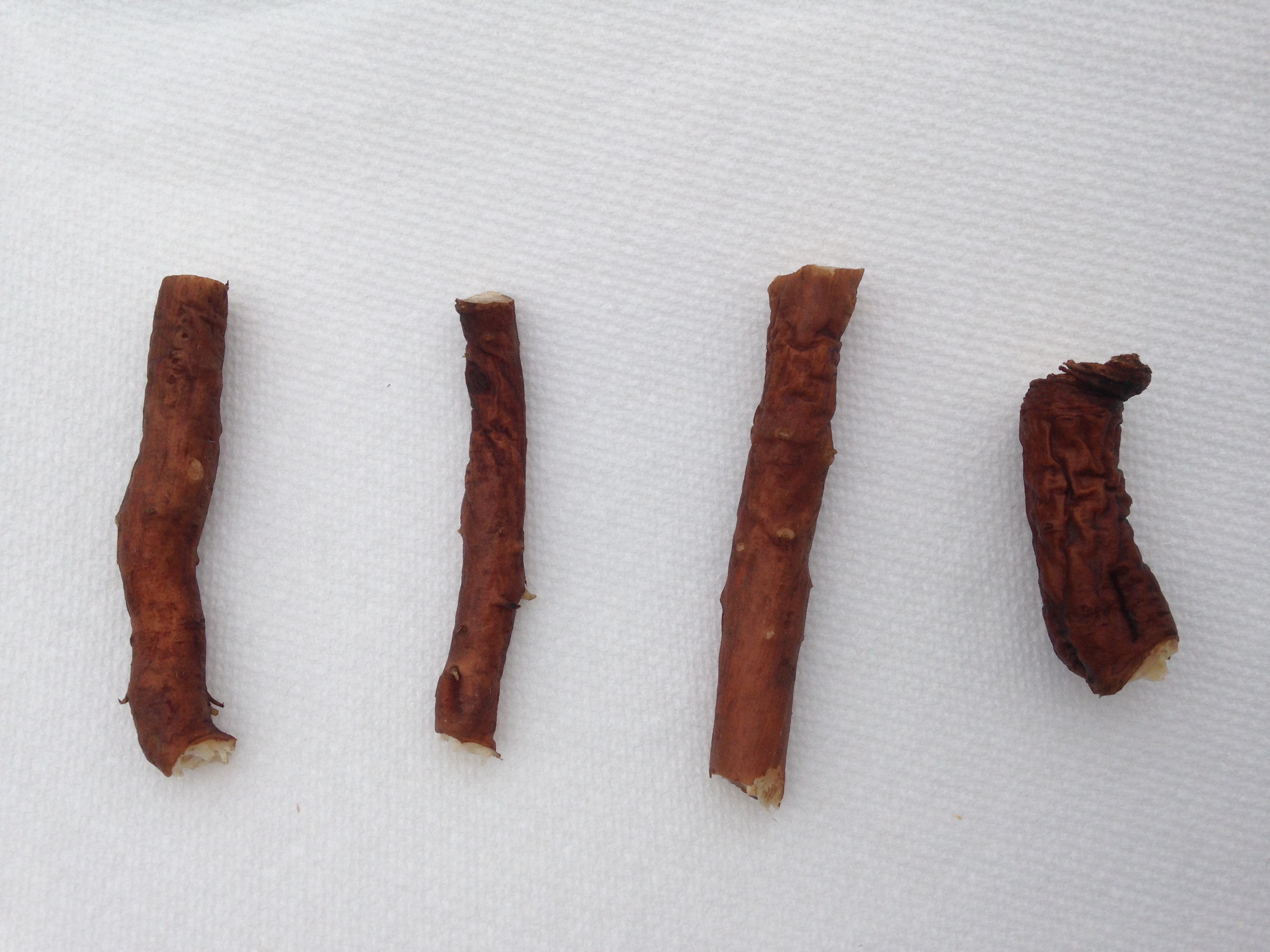 If may not seem worthwhile to go through the trouble of making this tea but the method is really very simple. It is a good idea to collect Dandelions from a lawn that has not been sprayed, although the presence of dandelions probably indicates that it has not. The Dandelion sends down one large taproot that sometimes comes easy but other times does not, it usually depends on the soil. I like to slide a kitchen knife down alongside it when I pull the weed out. If the root snaps off before you get it, oh well, move onto one of the next trillion dandelions. When you get a collection of dandelion roots, separate them from the rest of the plant. Rinse them off under cold water scrubbing with the fingers and pat dry. If I have only a few roots I mince them up with a knife, otherwise a food processor works well for larger batches. Set oven rack in the middle position, and turn heat to 200 degrees. Roast for 1 hour turning the tea one time during the cooking process. Tea can be made right away or stored.