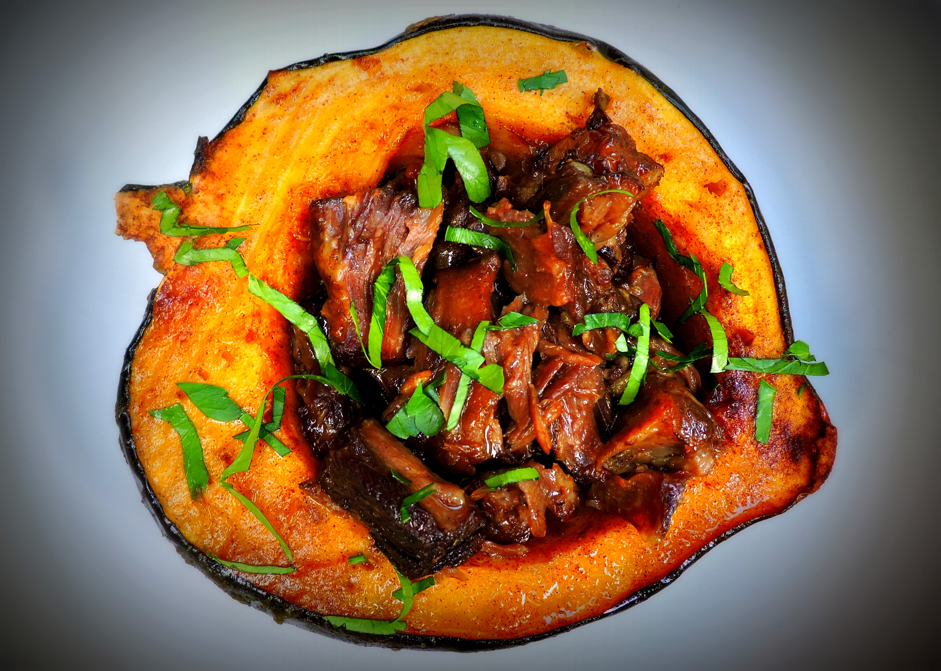 Coffee Braised Oxtails in an Acorn Squash Bowl