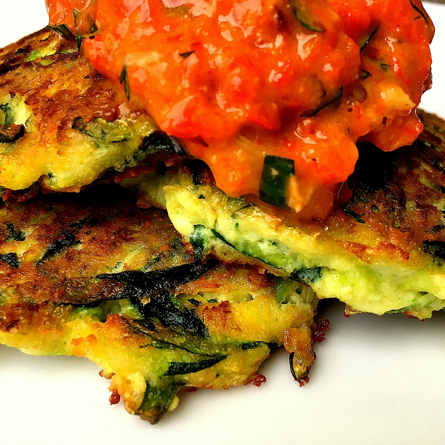 Zucchini Cakes with Charred Sweet Pepper Sauce