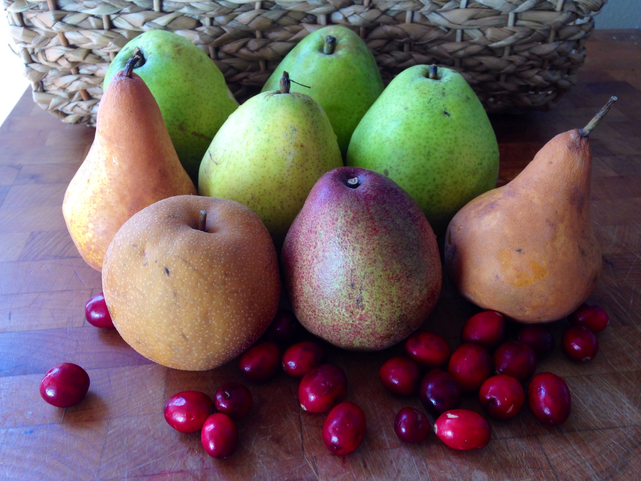 Preheat oven to 350. Slice each cranberry in half and chop pears into slices, then dice pear into smaller pieces leaving the skin on. Sprinkle 1/2 tsp cinnamon on pears and cranberries and tumble to mix with hands.