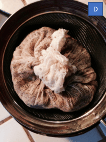D: When ready line a strainer with cheese cloth and fill with your wet acorn flour. Squeeze out most of the water and then leave it to slowly drain for about a day or even overnight. Spread flour on a baking sheet and put the oven rack in the middle-high position at 200 degrees for about an hour or two until it dries. Check and mix it up a few times by basically sifting it up with a fork.